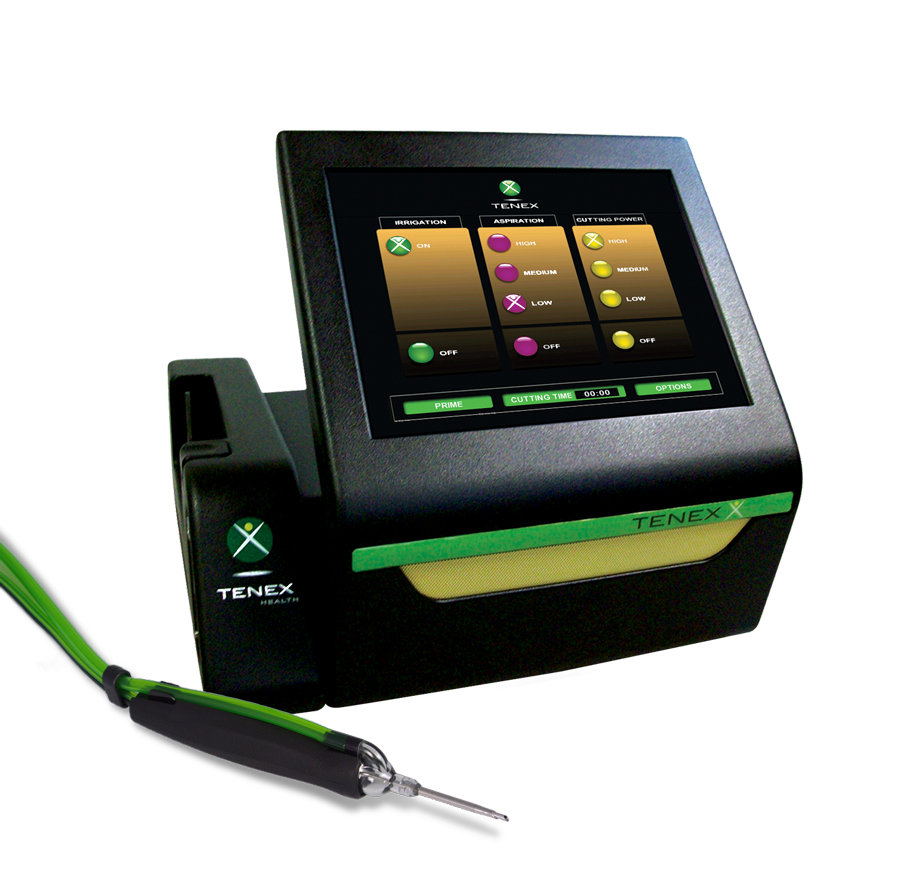 Mayo Clinic과의 협력 하에 개발된 Tenex Health TX는 테니스 엘보나 골프엘보와 같은 만성 건(tendon)의 통증을 치료하는 미세침습(minimally invasive) 의료 기술로 초음파 유도하에 정상조직은 보존하고 손상된 건 또는 연부 조직의 통증의 원인만을 정확하게 제거 합니다. 시술을 위한 절개는 최소침습으로 약 5mm 정도이기에 시술 후 다음날 복귀가 가능하며 회복이 빠른 편 입니다.